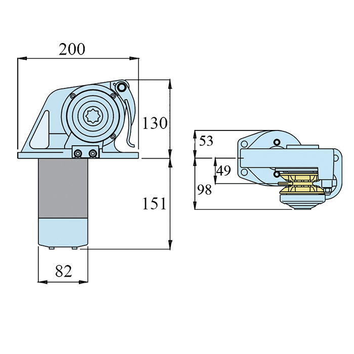 Электрическая якорная лебедка с вертикальным расположением двигателя.