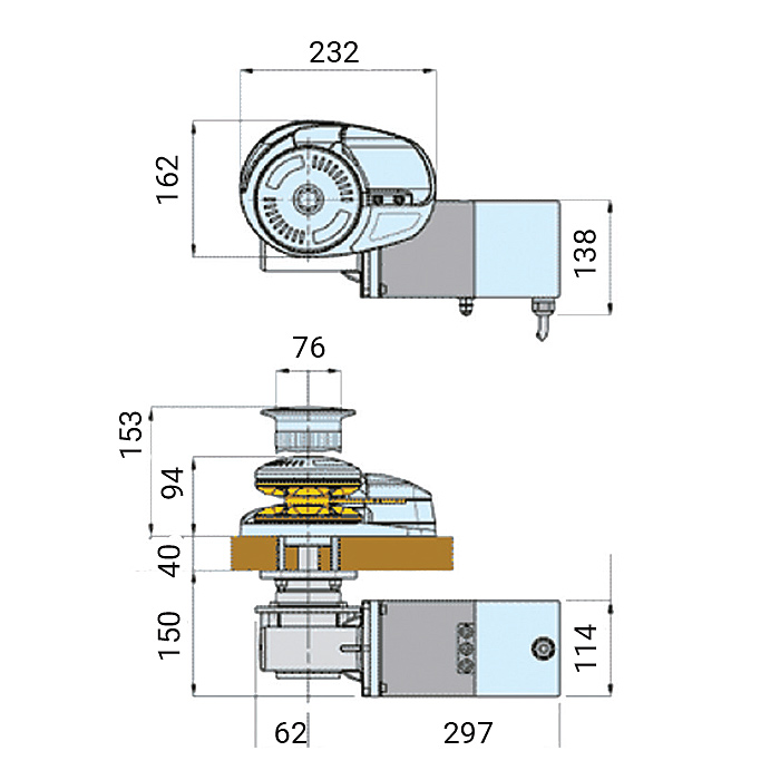 *Электродвигатель лебедки обеспечивает дифференциальную скорость вытравливания цепи и оснащен фиксатором для аварийного управления лебедкой.